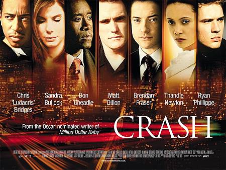 "Crash"這個詞除了表達撞擊、事故之外,我認為在這部電影裡還可以解釋成"爆炸",之所以這樣解釋,就是因為爆炸的瞬間與過程如同電影的每個情節一樣,是無可預期、充滿誤會的複雜交織。電影可以拿最佳原創劇本,我想就是其錯綜複雜卻又可以呈現在簡單不過的現實生活,換句話說就是現實生活是既簡單又複雜的矛盾體,如同無可預期的人生。(我發誓有看懂電影啦= =只是不知道要如何講才好而已)